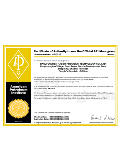 API 4F Certification...